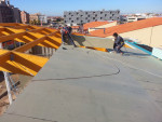 Encima de la lamina se extienden rastreles metalicos de chapa galvanizada, para recibir el panel sandwich.