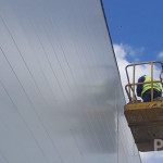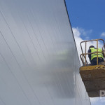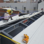 El trabajo empezó con la instalación de panel sándwich de chapa sobre una estructura existente.