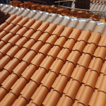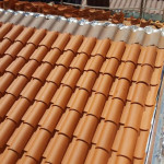 La siguiente fase era instalar paneles bajo-teja Onduline para la impermeabilización de la cubierta. Sobre los cuales se instaló la teja cerámica árabe curva.